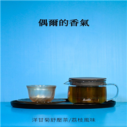 洋甘菊紓壓茶、荔枝風味,無咖啡因。📍可回沖 、📍熱飲/壺